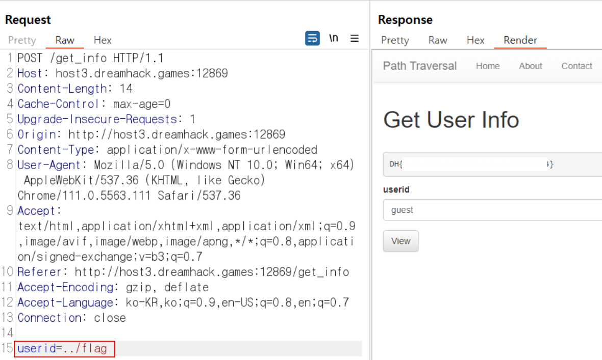 path traversal 취약점을 이용해../ 로 상위 경로를 이동해 flag 확인해 준다.