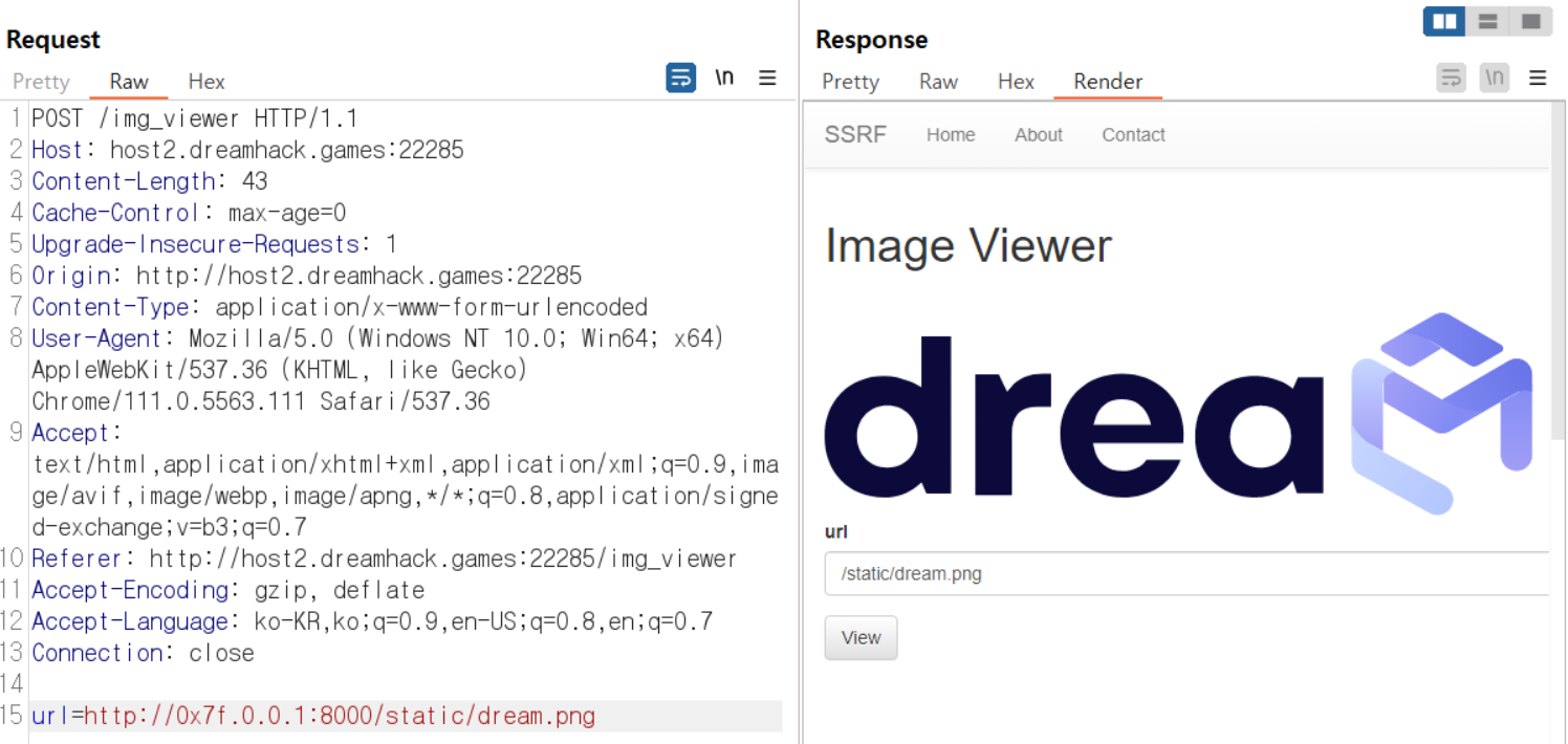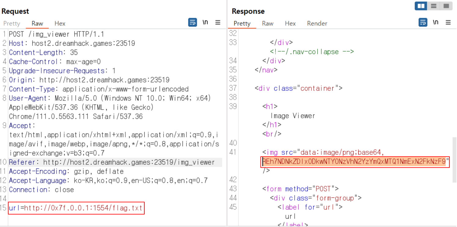 먼저 127.0.0.1의 IP를 우회하기 위해 해당 주소를 hex 인코딩을 해준다.