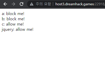 script-src를 사용해 script-src 'sha256-P9oV1Sc7O1Di7wEu1Q0fc9Jb2+DopNb6840c7E5XuNY=' 'sha256-Pl2V1+QPNtARvuHPfLjHPFJ5rA0Ky2MhOJ8KD2Y0zN8=' https://code.jquery.com/jquery-3.4.1.slim.min.js 'sha256-l1OSKODPRVBa1/91J7WfPisrJ6WCxCRnKFzXaOkpsY4=' 구문으로 모든 정책을 허용시켜 준다.(순서대로 a, b, c )