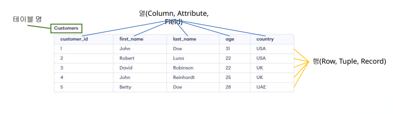 데이터베이스는 구조화된 데이터의 조직화된 모음으로 컴퓨터 시스템에 전자적으로 저장되며 DBMS에 의해 제어된 데이터는 일련의 테이블에서 행과 열로 구성되고 SQL은 대부분의 데이터베이스에서 데이터 작성 및 쿼리에 사용된다.