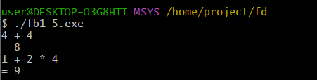 | calclist exp EOL { printf("= %d\n", $2); }
