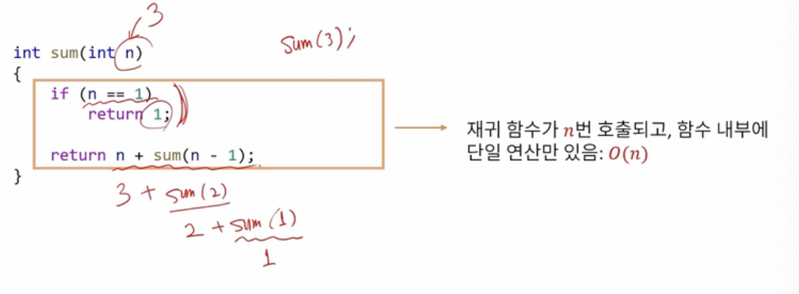 - 연산 횟수를 구체적인 수식으로 표현하지 않고, 최고차항의 차수만으로 표현