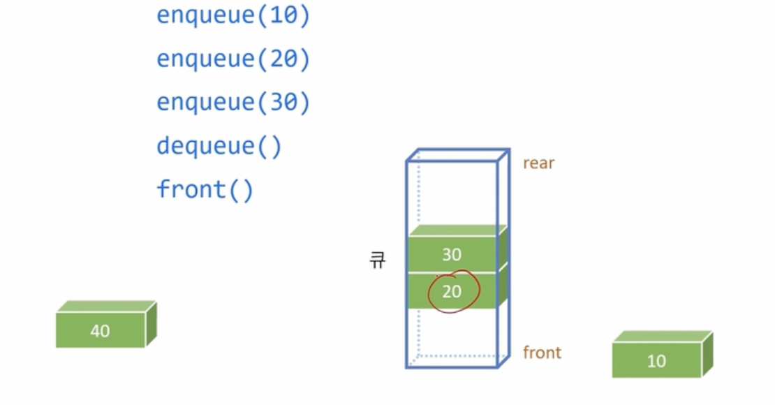 q.enqueue(30); // (front)10, 20 ,30(rear)