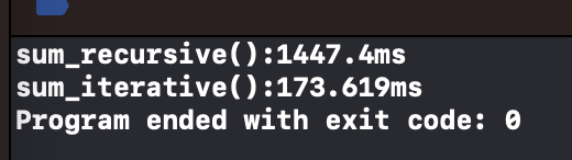 cout << "sum_iterative():" << msec << "ms" << endl;