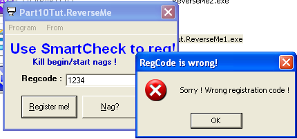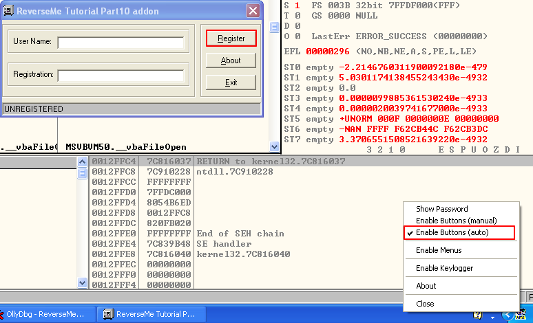ReverseMe 프로그램을 실행시키면 올바른 레지스터 값을 넣어야 하는 문제이다.