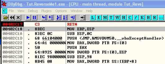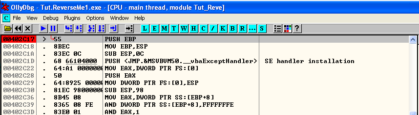 • 첫 번째 파일 분석 (Tut.ReverseMe1.exe)