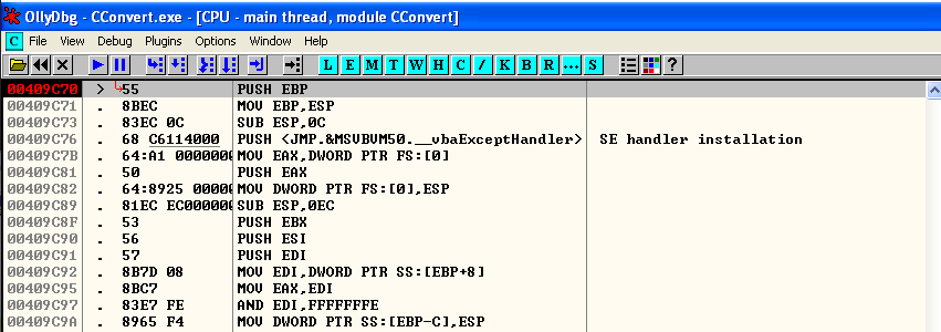 우리가 레지스터를 입력해 체크하는 부분은 409 C70 주소에 위치한다.