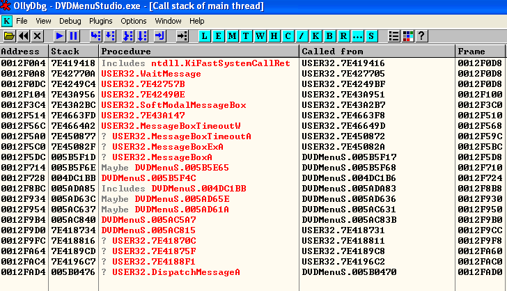 Call Stack에서 메시지 박스를 호출하는 위치를 확인한다.