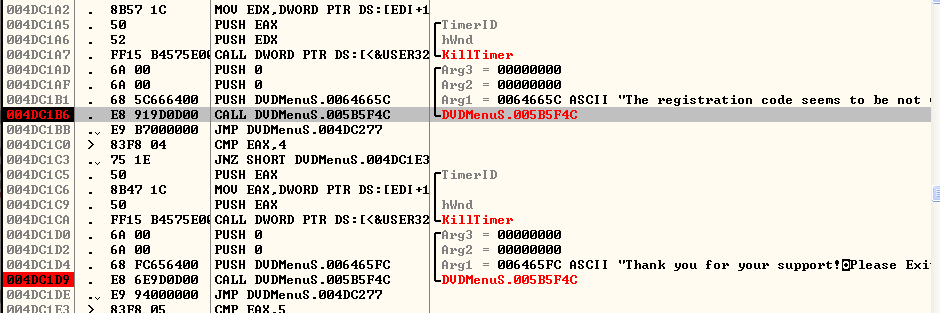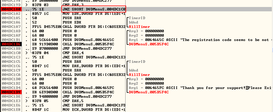 레지스터 등록을 시도를 하면 004 DC1 B6 부분에서 브레이크 포인트가 걸린다.