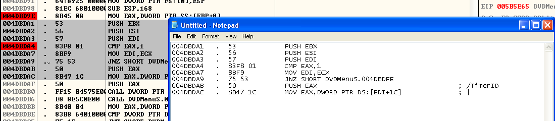 인라인 패치를 위해 몇 개의 명령어를 복사해 놓는다..!