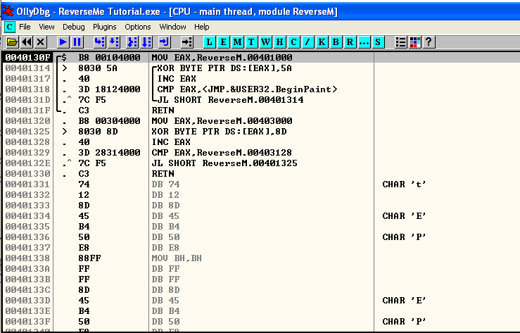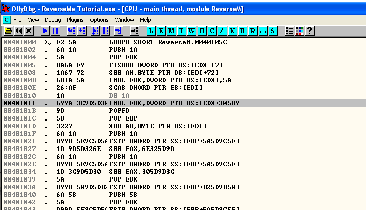 PUSH 0에서 JMP SHORT 0040106A로 점프를 해준다. 그러면 정상적으로 프로그램이 시작된다..
