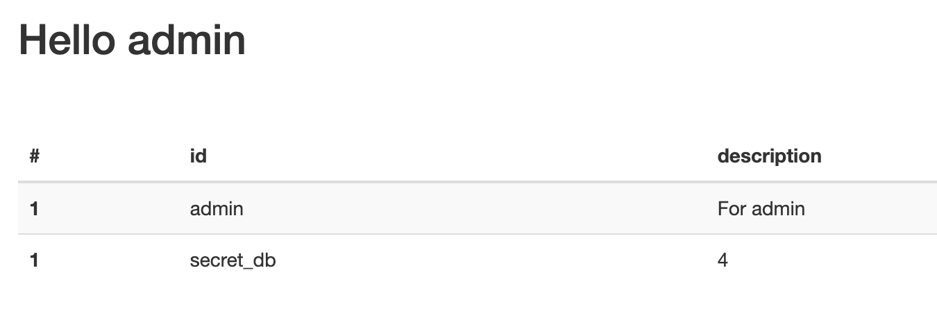 데이터베이스 이름을 확인해 본 결과 secret_db의 데이터베이스가 있다.