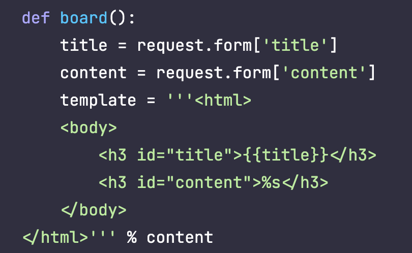 Template을 사용하여 <h3 id="content">%s</h3> 부분에서 {{data}} 을 입력을 하면 해당 {{{ }} 안의 코드가 실행이된다,,!!