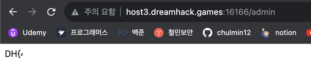 /admin 경로로 이동을 하면 flag값을 얻을 수 있다.