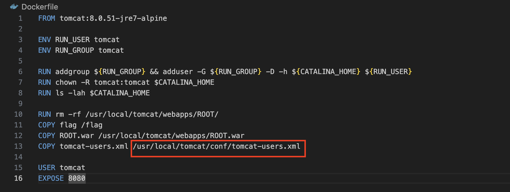 도커 파일을 보니 tomcat-users.xml 에 정보가 들어있을 거 같다.,!