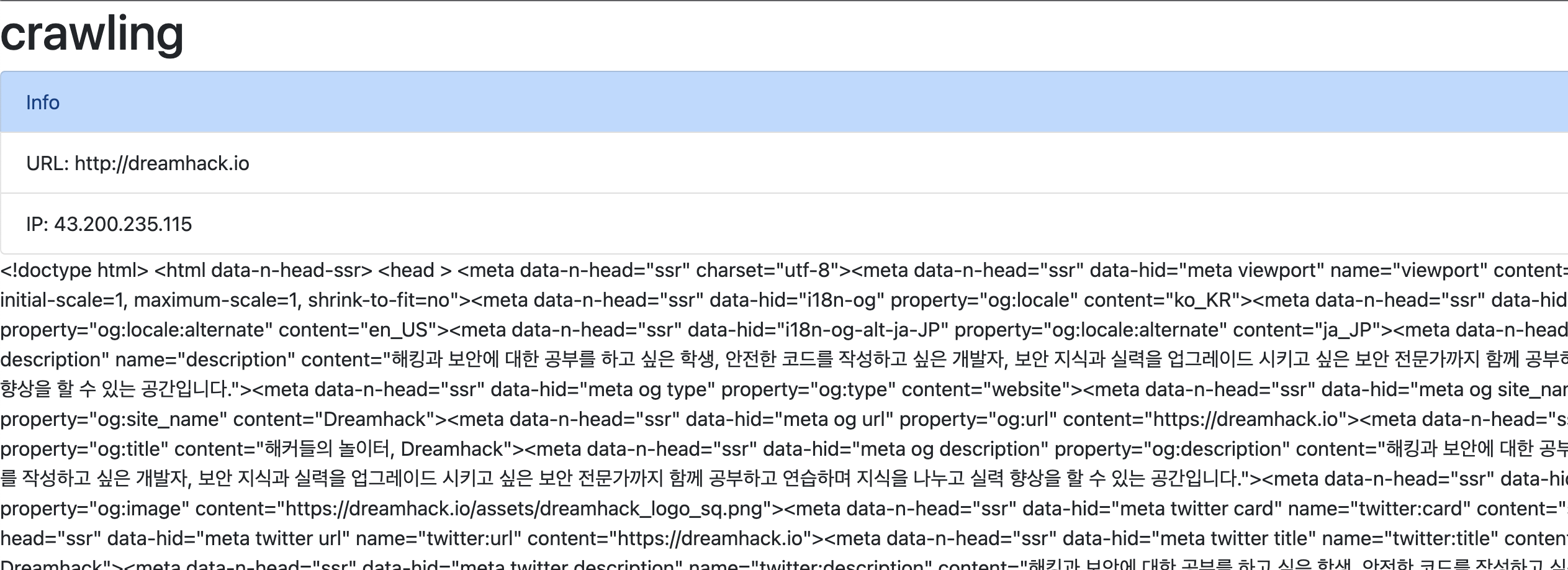 페이지를 보면 URL 주소를 입력을 했을 때, 그 주소에 대한 메인페이지를 크롤링해서 출력해 준다.