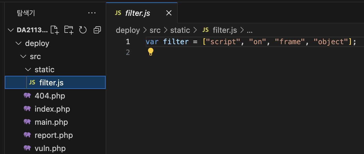 filter.js 파일이 static폴더 안에 있어 경로조작이 어려울 거 같다.!