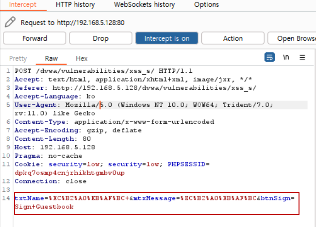 • DVWA 실습 (XSS Stored)