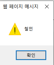 alert 함수는 경고 메시지 창을 호출하는 함수이다. 즉 철민이라는 메시지와 함께 경고창뜬건 스크립트가 실행이 된 걸 알 수가 있다.