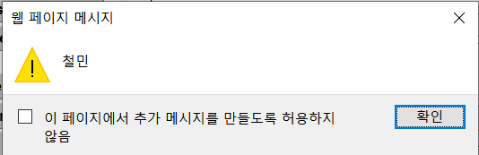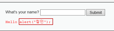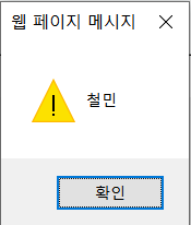 위에서 한 실습 처럼 <script>alert('철민');</script> 스크립트를 입력을 해보자.