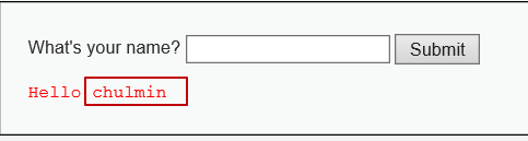 입력값에 chulmin를 입력을 하였다. 출력 결과 Hello chulmin 이 출력이 되었다.