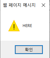 실행 결과 HERE라는 문구와 함께 경고창 메시지가 출력이 된다.