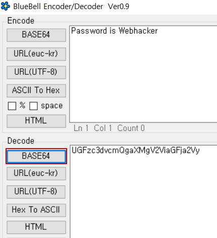 | 문제 2) UGFzc3dvcmQgaXMgV2ViaGFja2Vy |