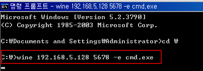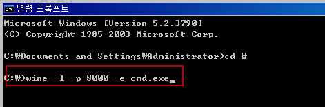 ※ wine은 원래 이름은 nc.exe인데 변경해 놓았다.