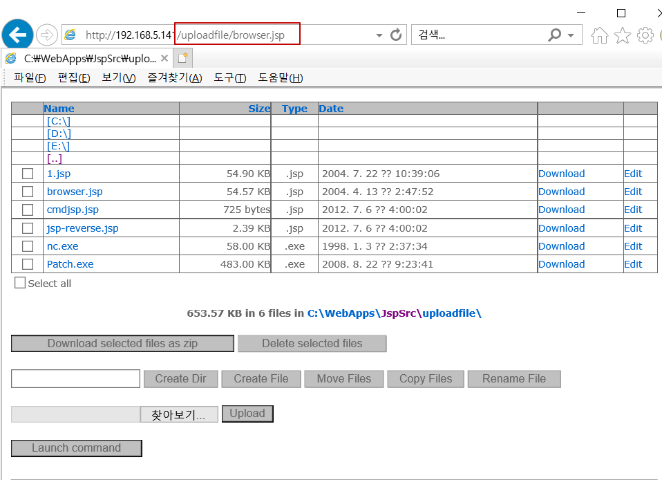 http://192.168.5.141/uploadfile/browser/jsp 주소로 이동을 하면 웹 서버의 루트 디렉터리로 이동을 할 수 있다.