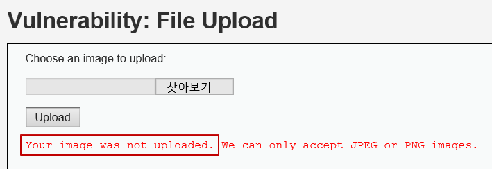 웹쉘 파일을 업로드하면 이미지가 아니라고 메시지가 출력이 된다.