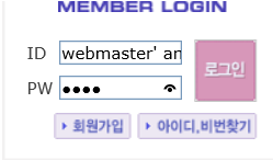 예상 SQL 문은 select id, pw from???? where id='webmaster' and 1=1 --' and pw=' ';이다.