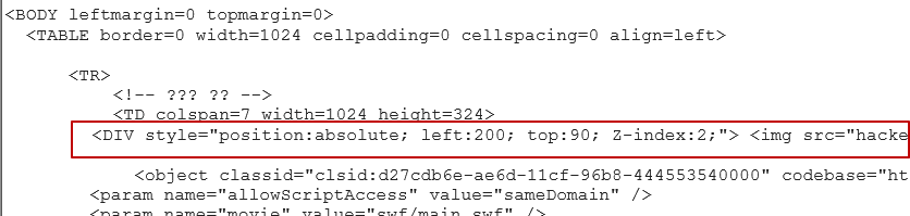 index.jsp 파일에 들어가 Body 부분에 <DIV style="position:absolute; left:200; top:90; Z-index:2;"> <img src="hacker.jpg"></DIV> 스크립트를 넣어준다.