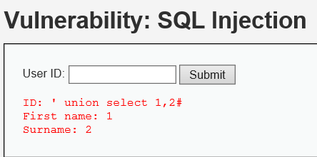 컬럼의 개수를 확인을 하기위해 union문을 사용하여 한 결과 1,2컬럼이 있다는걸 확인 했다.