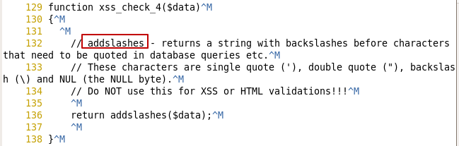 ※ addslashes 함수는 ', ", \, NUL 앞에 \를 붙여서 Escape처리를 하고 있다.