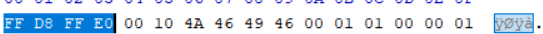 JPG : FF D8 FF E0 00 10 4A 46 49 46 ---> FF D8로 시작해서 FF D9로 끝난다.