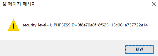 <script>alert(document.cookie)</script> 을 사용하여 쿠키값을 출력해보자.