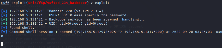 vsftp의 2.3.4 버전에 Backdoor 명령이 실행되는 취약점이 존재하기 때문에 Exploit 공격이 가능했고, Shell을 실행할 수 있는 권한(root 권한으로)도 얻을 수 있었다.