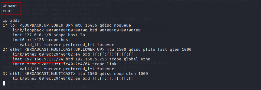 ip addr 명령어를 통해 Taeget IP주소에 접속이 되었고, root 권한을 받았다.
