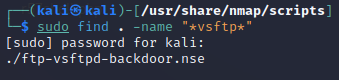 nmap에 vsftpd 스크립트가 있는지 확인하는 방법이다.