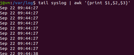 tail syslog | awk '{print $1,$2,$3}'은 월, 일, 시 출력된다.