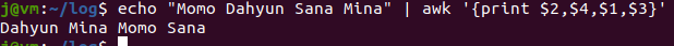 echo "Momo Dahyun Sana Mina" | awk '{print $2,$4,$1,$3}'