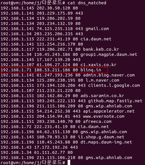 192.168.1.71 하고 192.168.1.72 아이피 주소가 blinq.in사이트에 방문을 하였다.