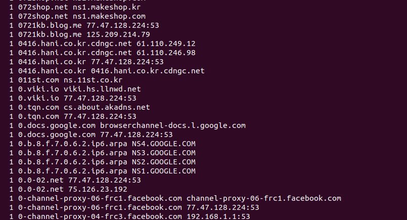 cat 2_dns.log | sed 's/\[\*\*\]//g' | awk '{print $5,$9}' | sort | uniq -c | sort -rn을 사용하면 수많은 로그들을 볼 수 있다.