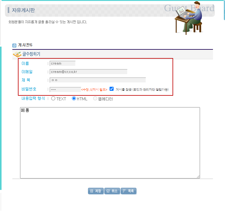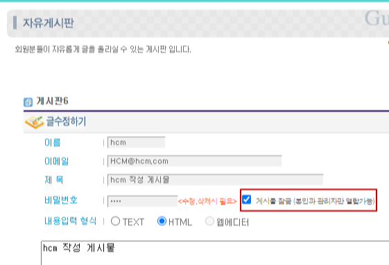 | 본인 및 관리자만 열람 가능한 게시글 수정 |