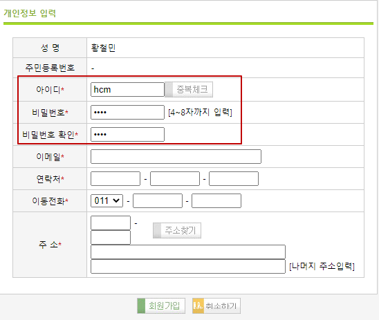 주민등록번호를 안적고 다음 회원가입 페이지로 이동이 된다.