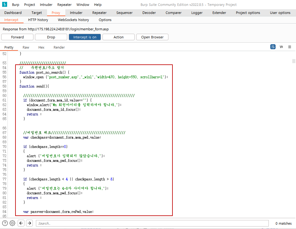 Response에서 소스코드를 보면 우편에 대한 소스코드를 볼 수 있다.