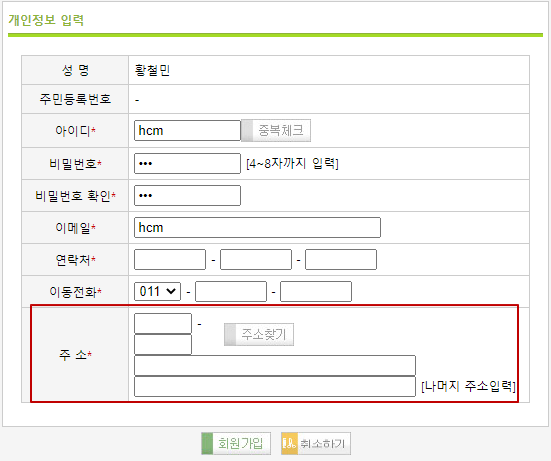 | 회원가입시 주소를 안 적고 우회가 가능한가? |